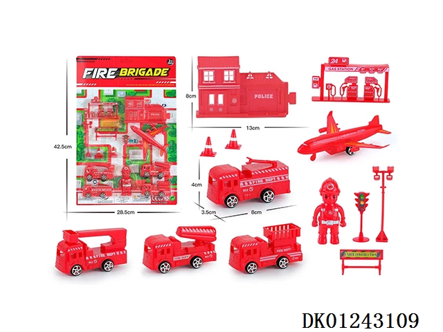 Guojiajia storage alloy fire parking lot (equipped with 1 alloy car) (equipped with 1 set of road signs) (46 pcs)