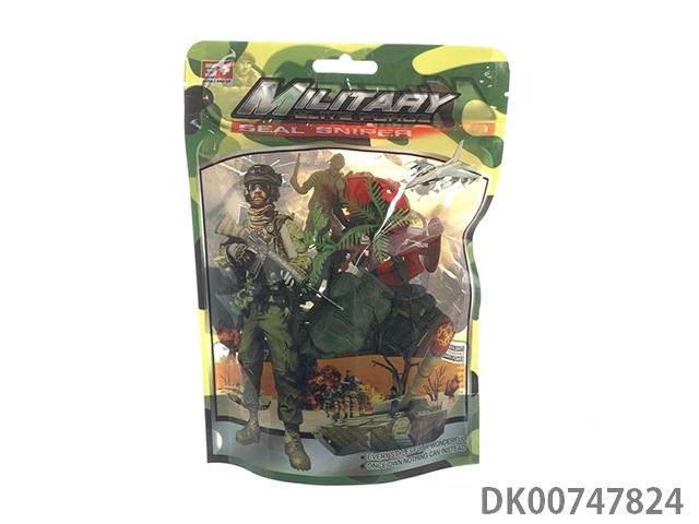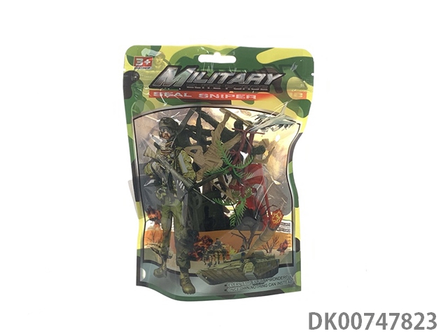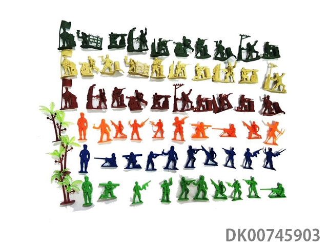 60 Soldiers and 3 trees, card head bag military suit