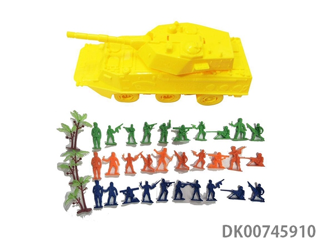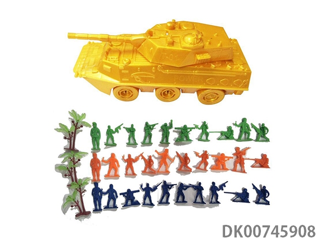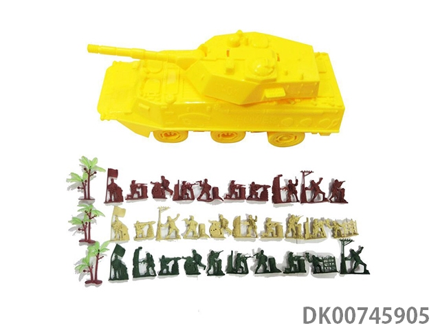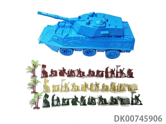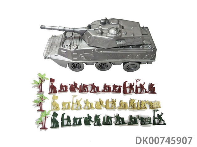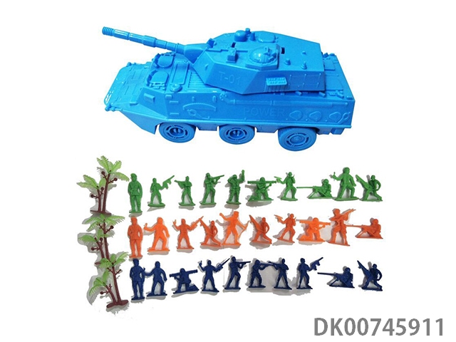 Inertial armored tank vehicle 1 and 30 soldiers and soldiers and 3 trees, card head bag military model set