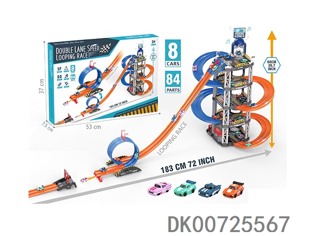 5-Layer 2-track racetrack with 8 cars, sound and light