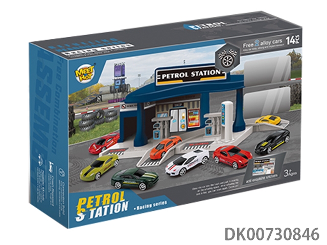 Two alloy cars for city racing gas station