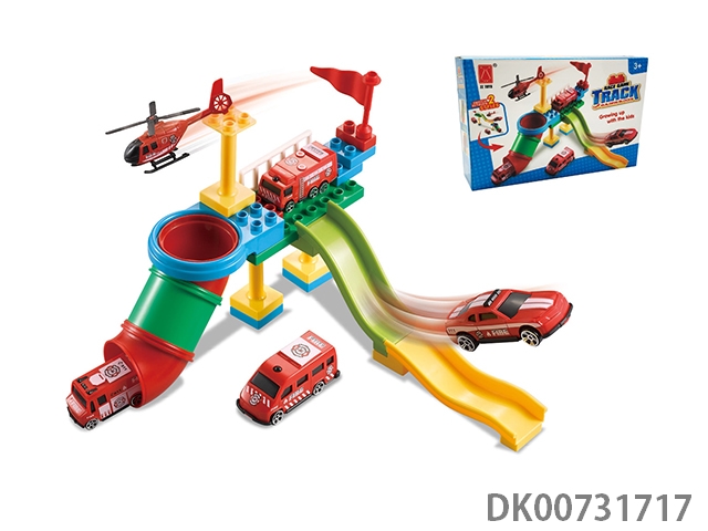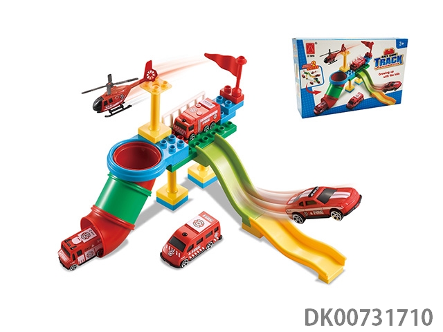 Building block track racing fire team
