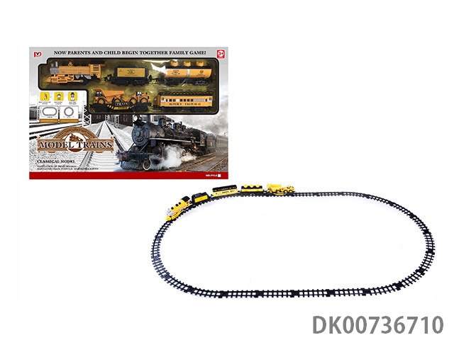 Yizhi rail racing electric smoke light music train with christmas special ic