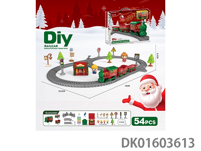 Christmas themed diy assembled electric rail car/54pcs