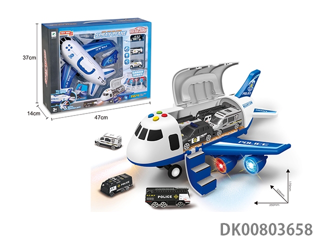 Alloy police scene with 1 alloy plane, 3 alloy cars and 1 alloy trailer (2 mixed)