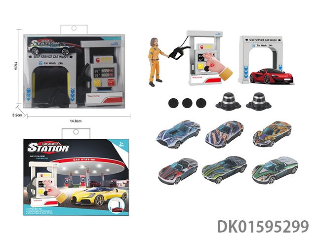 Gas station car wash scene combination with catapult 1:64 alloy racing car