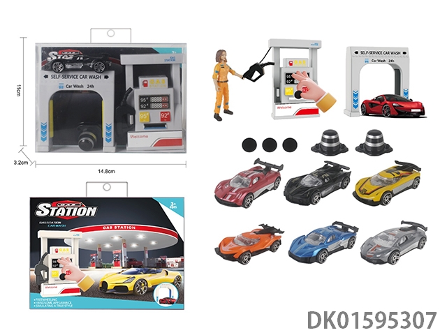 Gas station car wash scene combination with catapult 1:64 alloy short window racing car