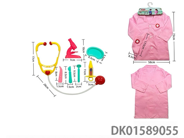 Cross border children’s diy clothing role-playing round label doctor’s uniform and 7-piece set (thick version) powder