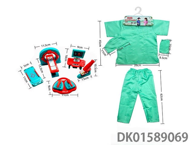 Cross border children’s diy clothing role-playing pet doctor top and pants and 5-piece set (thick) green