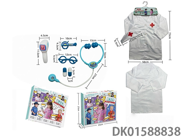 Cross border children’s diy clothing role-playing round label doctor’s uniform and 7-piece set (thickened version) (color box version) white