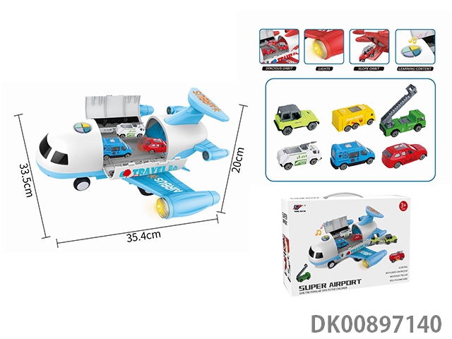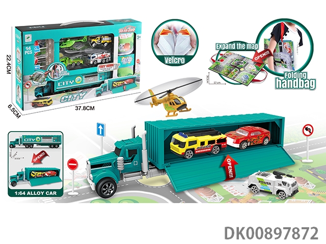 Multifunctional alloy city storage tractor and portable map storage bag (equipped with 1 container truck, 3 alloy cars, 1 aircraft, 1 road sign and 1 handbag) 14pcs