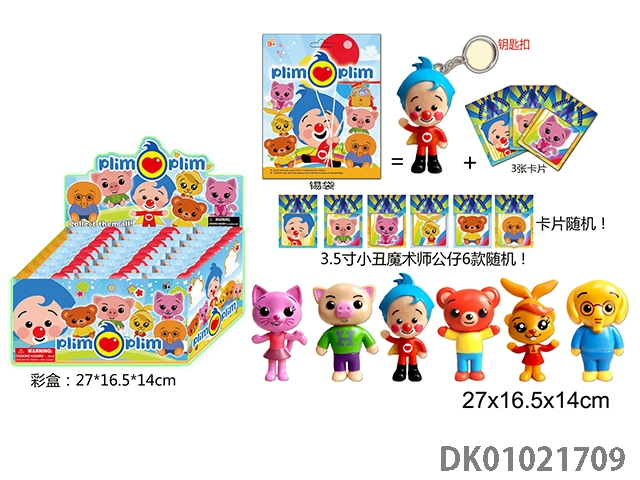 3.5 Inch clown magician doll single (with key ring) and 3 cards 20 tin bag cards and 6 dolls randomly
