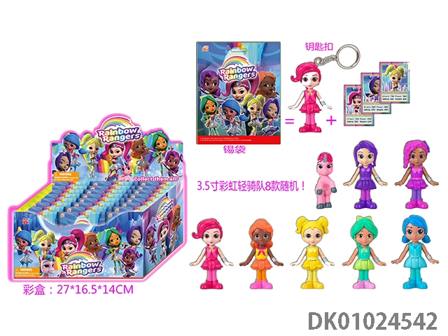 3.5 Inch rainbow qingqi team figures (with key ring) and 3 cards, 24 tin bags in tin bags, display box cards and 8 types of figures randomly