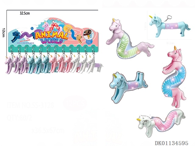 Light decompression telescopic versatile unicorn keychain 12pcs/board