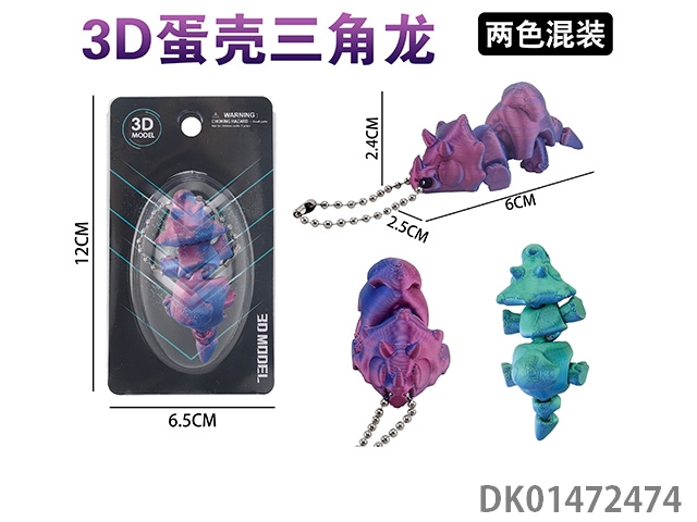 3D eggshell triceratops keychain (2-color mixed)