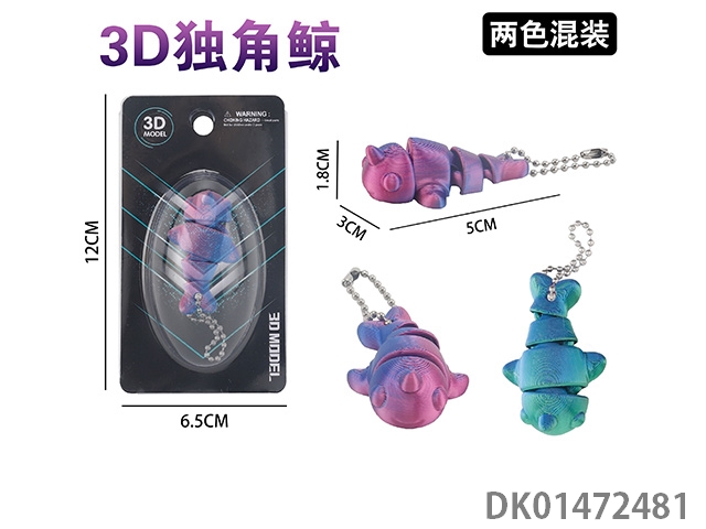 3D unicorn whale keychain (2-color mixed)