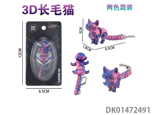 3D long haired cat keychain (mixed in 2 colors)