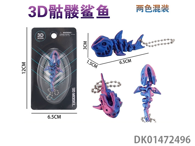 3D skeleton shark keychain (2-color mixed)