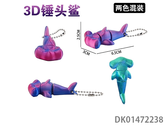 3D hammer shark keychain (2 color mixed)