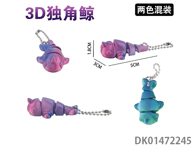 3D unicorn whale keychain (2-color mixed)