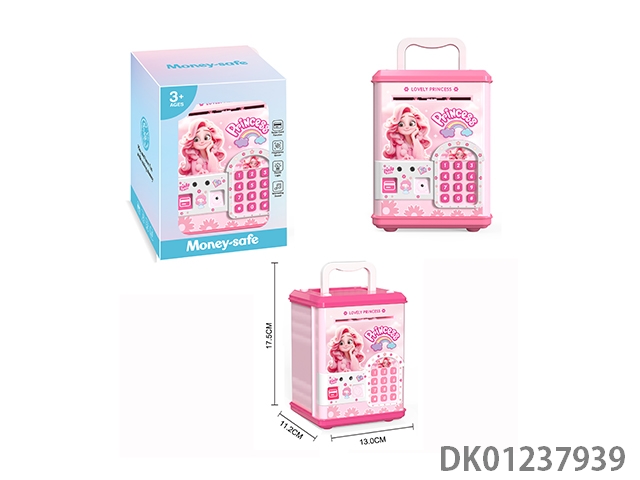 Pink girl’s electric piggy bank fingerprint/swipe card/fingerprint/automatic money roll/lighting/voice/music