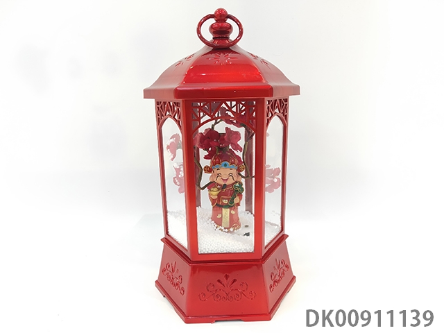 New year snow hexagon lamp - metal red / god of wealth