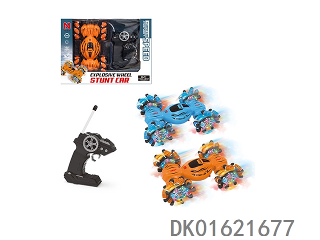 Four wheel drive explosive wheel stunt car/forward/backward/left turn/right turn/360 degree rotation on the plane/lighting/left and right side driving