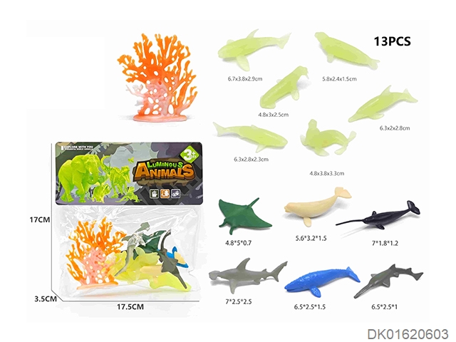 6 Glowing blue and 6 marine animals